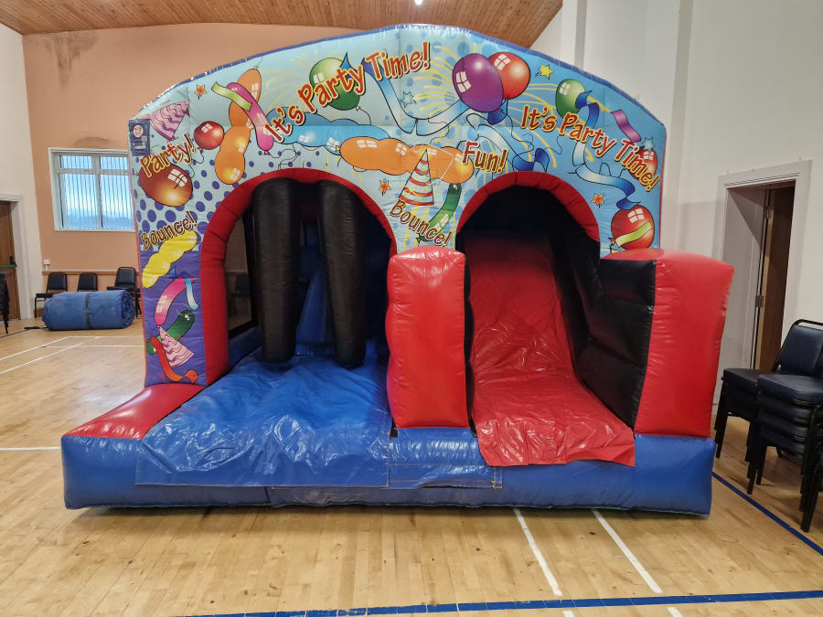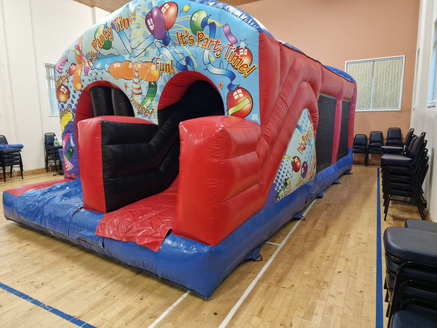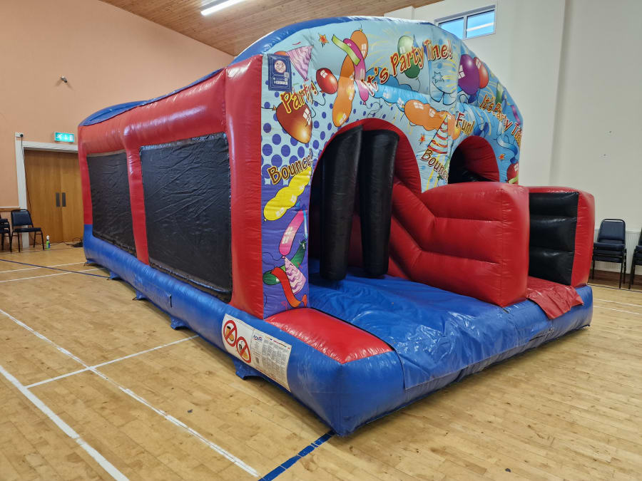 Inside has a small obstacle course and then a part to dance to the music and then you have steps leading you to the slide.